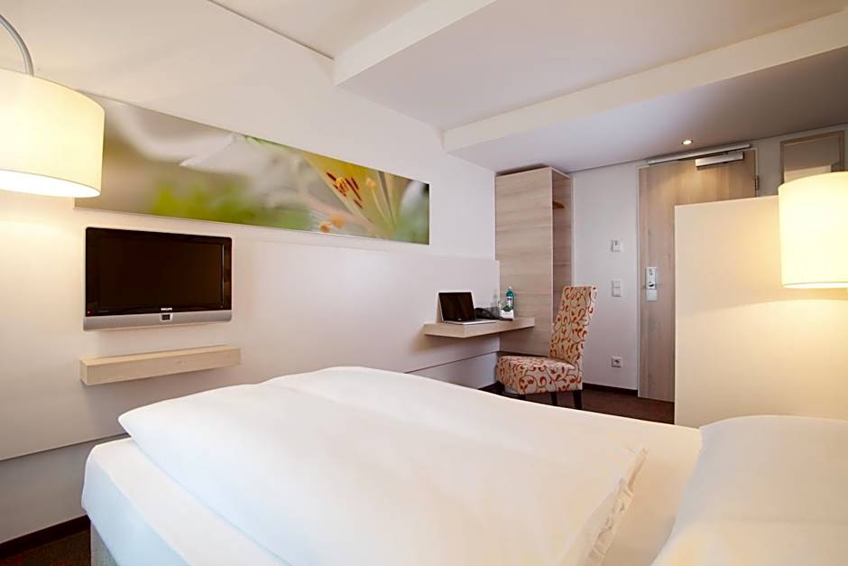 This comfort single room features a desk, a flat-screen TV with satellite channels and a private bathroom with shower and hairdryer. A bottle of mineral water is provided.